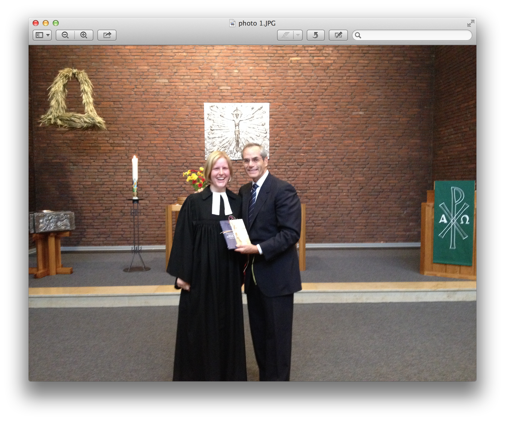 Pastorin Ulrike Wohlfahrt led yesterday’s service with warmth and deep spiritual feeling. It was a privilege to be there. She led the worship with inspiring respect of the Jewish roots of Christianity, saying, “We have so much to gain by listening to and learning from each other.”